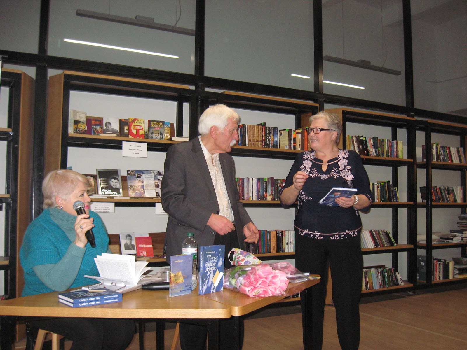 Бібліотекар Затворникова Е.М. і завідувач бібліотеки 45 Суховецька М.І. ознайомили присутніх з книгами про життя і творчість Висоцького, серед яких і книги одеського автора Галини Лазаревої, яка у 70-х роках працювала головним редактором Одеської кіностудії.